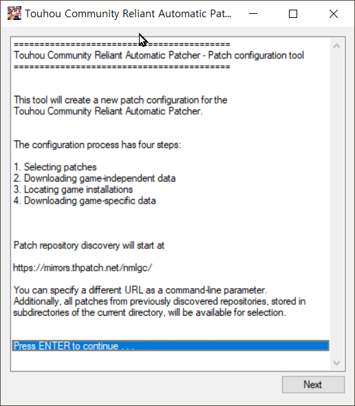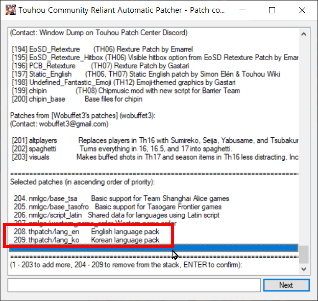 thcrap_configure.exe - 1-2. 패치 이름 선택