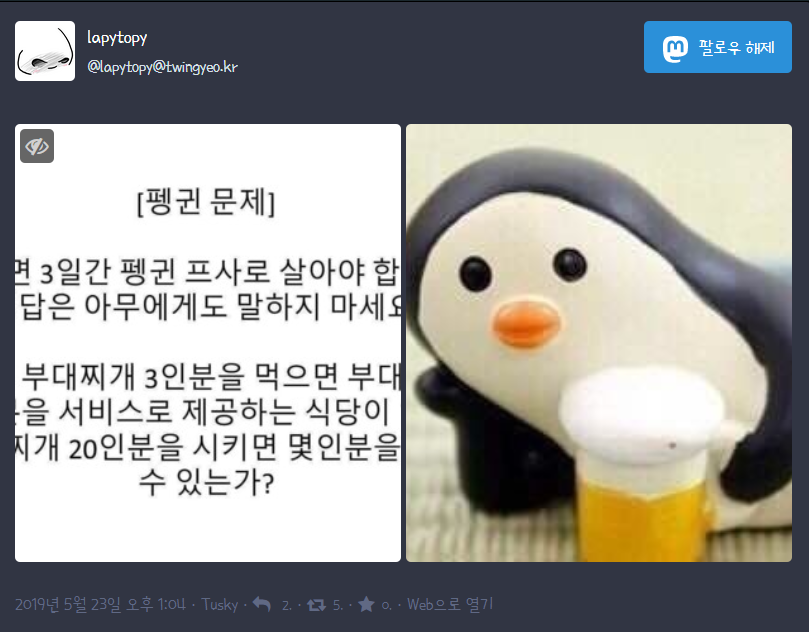 - 펭귄 문제에 당해서 3일간 핑구 프사를 하고 살았습니다. (되돌리기 귀찮ㄷㅏ)