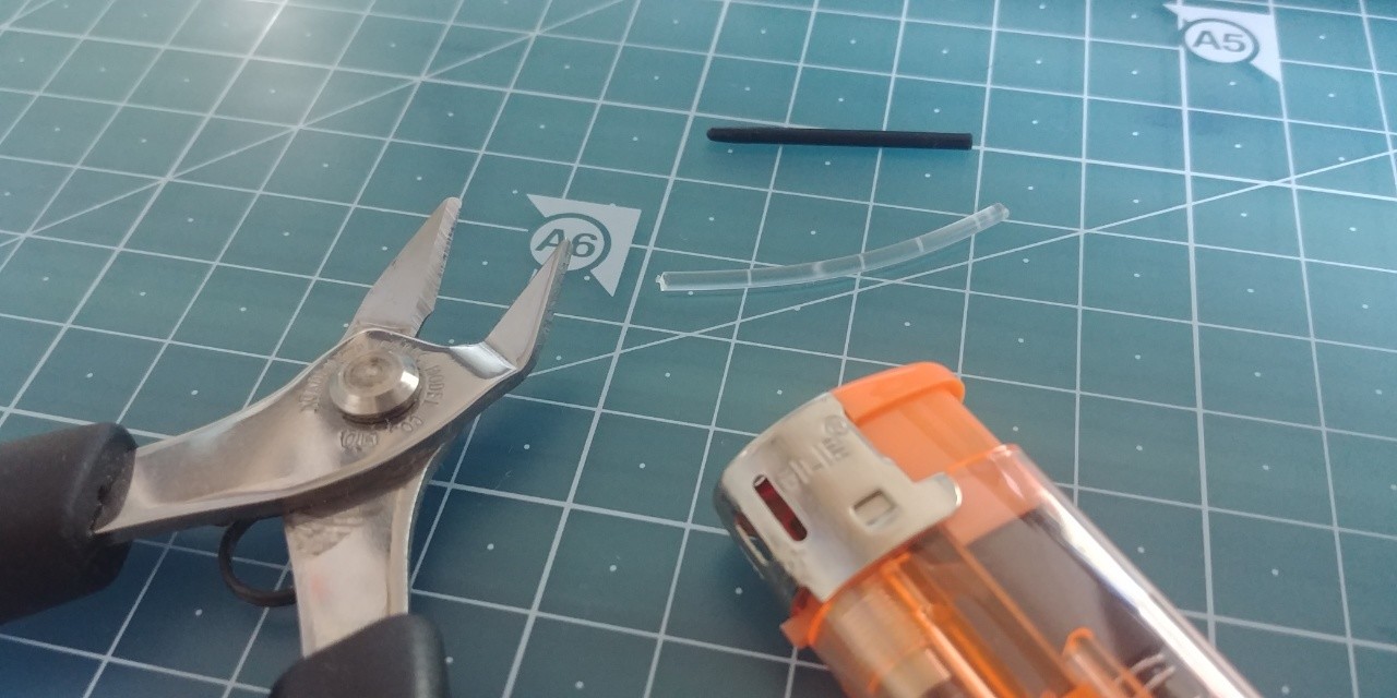 끝을 롱노즈나 니퍼 같은 걸로 잡아서 라이터로 가열합니다. 얘가 좀 가열되어서 굽는다 싶으면 (제껀 색이 좀 더 투명해짐) 좀 식힌 뒤 바닥에 굴려서 펴는 게 가장 바르게 펴졌습니다. 굴리세요. 바닥에.