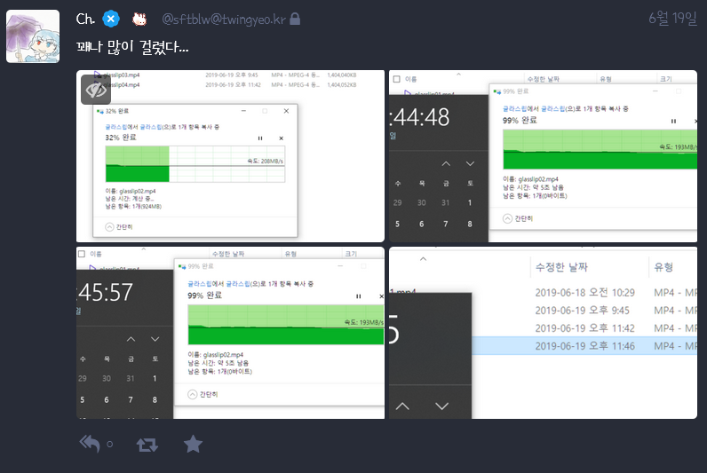 다운로드는 속도를 보아하니 일단 다 받고 네트워크 드라이브로 옮기는 모양입니다.