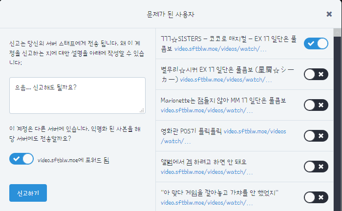 - 신고한 글이 올라온 사이트에도 신고를 전달할 수 있습니다.
