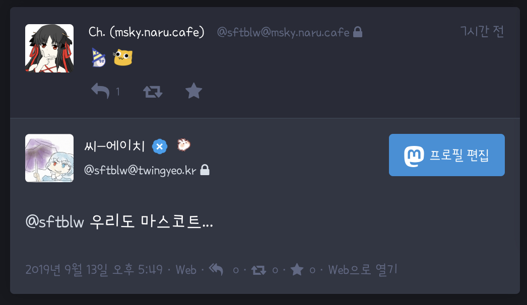 다른 홈페이지의 마스토돈 친구와 얘기하기