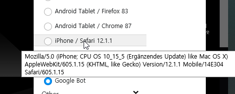 유저-에이전트 스위처 라는 프로그램인데 사이트한테 "내가 이런 브라우저야" 하고 거짓말을 할 수 있게 됩니다.