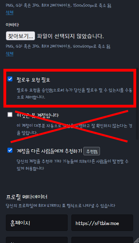(ㄴ) 팔로우를 수동으로 승인하게 설정합니다.