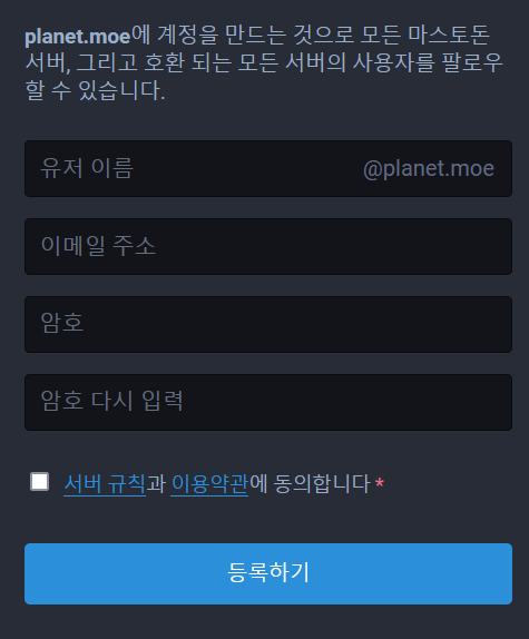 마스토돈이 트위터와 근본적으로 다른 점은 서로 서버가 달라도 팔로우, 멘션 등이 된다는 것이지만, 이 글을 읽는 분들께는 중요하지 않겠죠. 알아만 두시면 될 것 같습니다. (트위터와는 호환되지 않습니다)