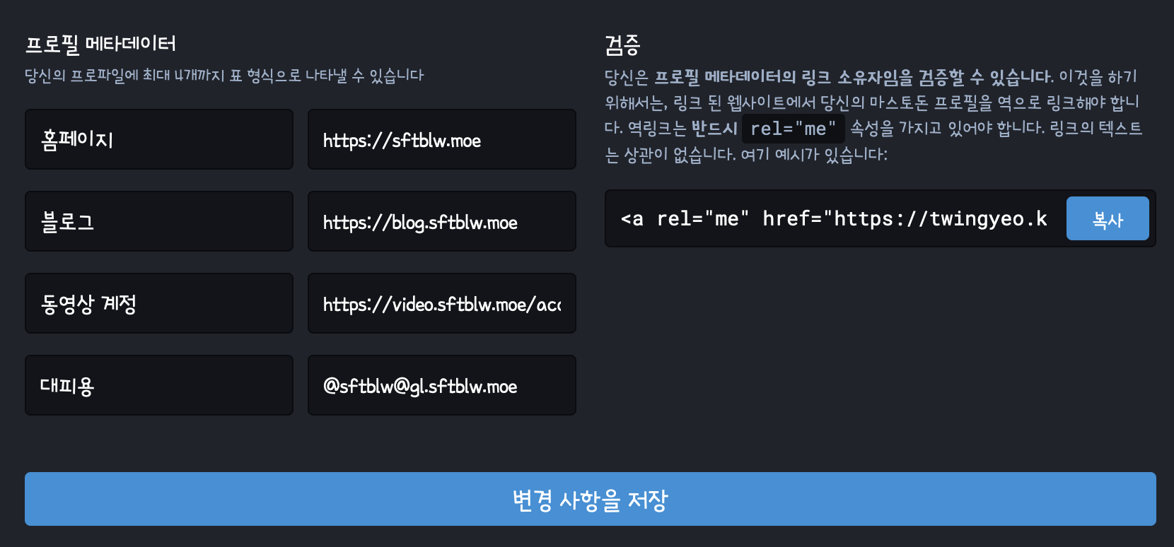 - (자커러 분들에게는 안 중요하겠지만) 프로필 메타데이터의 "검증" 부분