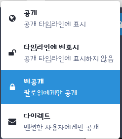 글에 설정할 수 있는 공개범위는 총 네 가지입니다.