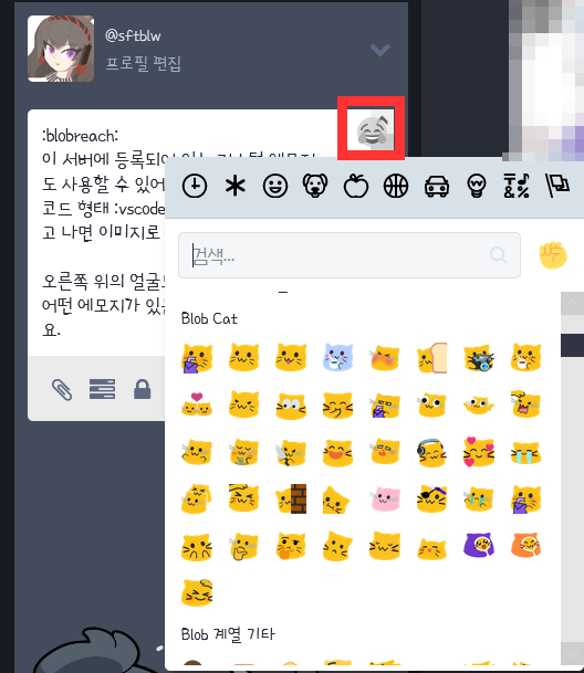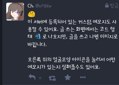- 커스텀 에모지 추가는 서버의 관리자에게 문의해주세요.