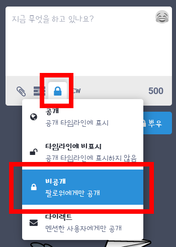 - 마스토돈의 DM은 트위터의 쪽지와는 다르게, 일반 글과 동일하게 취급함