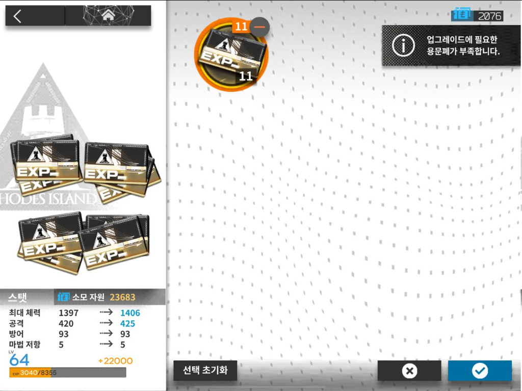 다행인지 아닌지는 모르겠는데, 캐릭터를 레벨업하려고 그 캐릭터로 자동을 돌릴 필요는 없습니다. 스테이지를 돌아도 오르는 건 "신뢰도" 뿐이거든요. 레벨업을 시키려면 "경험치 카드"를 먹여야 합니다. 그 경험치 카드를 파밍하거나 생산하는 데 시간이나 이성이 필요해서 그렇죠...