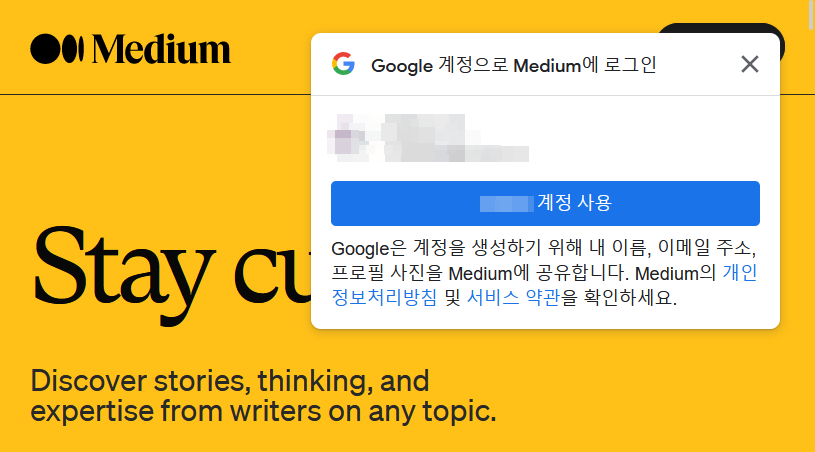 어느 정도의 추적에 개의치 않는 저 같은 사람이라도 문제는 여전히 남아있습니다. 구글 계정에 로그인해있으면 Medium 같은 사이트에서 "Google 계정으로 로그인하세요" 상자가 나타납니다. 이건 설정에서 끄던 말던 나오더군요. 이런저런 이유로 Google은 점차 Google 사용자가 아닌 쪽이 불편하게 만들고 있습니다. (그래야 Google을 쓸 테니까요.)