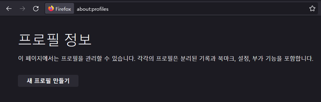 Firefox에서 about:profiles 를 입력하면 프로필 정보를 보거나, 다른 프로필로 새 창을 열 수 있습니다. (쉬잇...! firefox.exe --profilemanager 로 프로필 매니저를 열 수 있다는 건 TMI에요!)